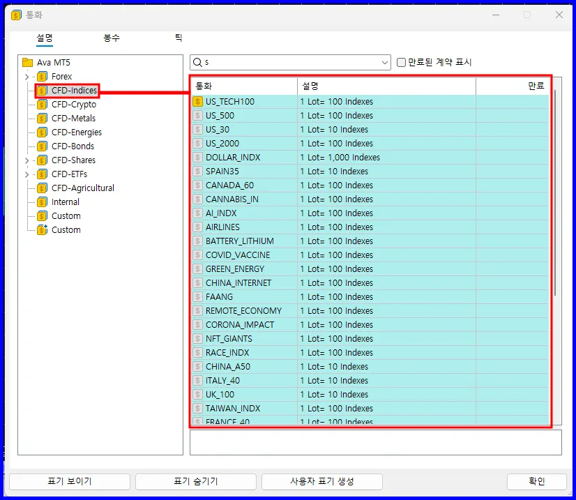 설명: 특정 국가 또는 산업군의 주식 가격을 종합한 지표를 거래합니다.