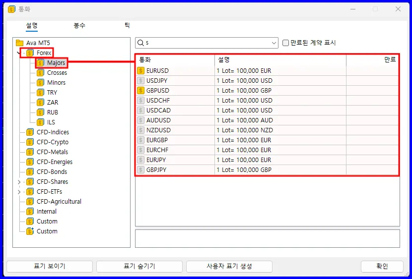 설명: 세계 최대 금융시장에서 통화를 매매하는 거래입니다.