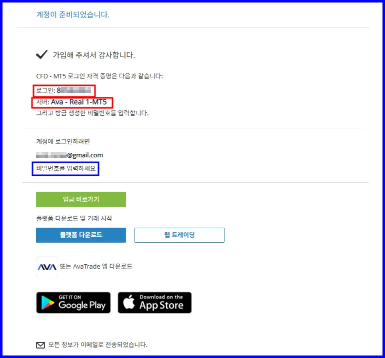 MT5 플랫폼에서 로그인 하시면 MT5 실계좌개설 완료입니다.
