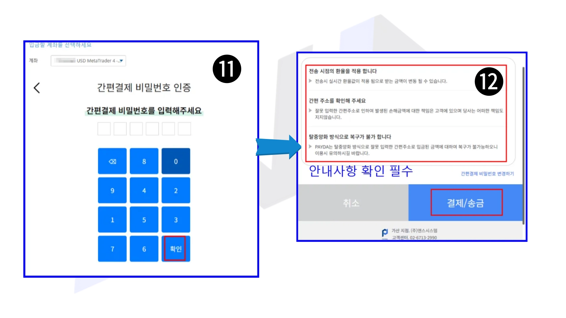 반드시 아바트레이드 거래계좌번호와 페이다간편계좌(로그인)가 동일해야합니다.
