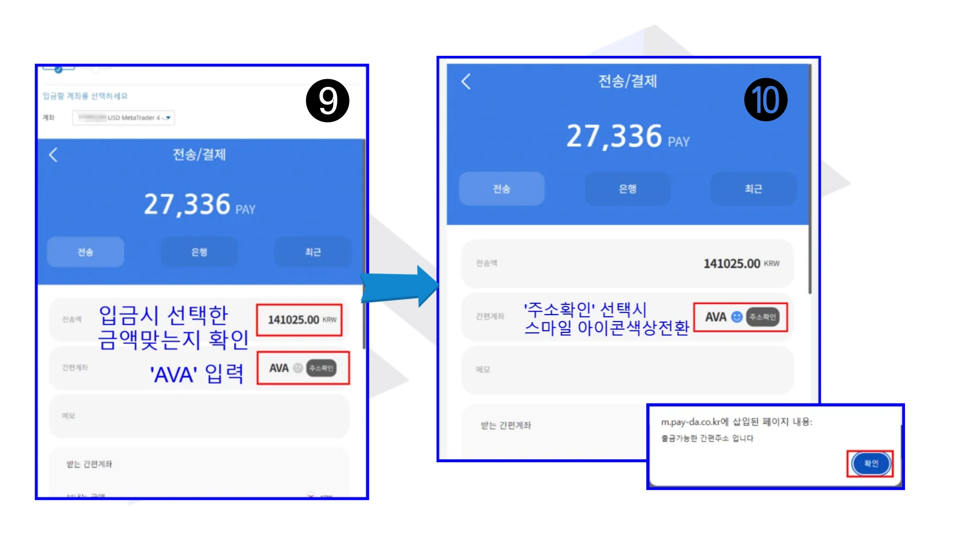 Step3. 페이다 → 아바트레이드 자금전송