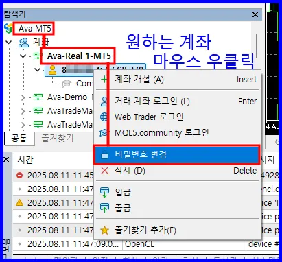 MT4/5 계정 비밀번호 변경으로 아바트레이드 홈페이지 로그인비밀번호