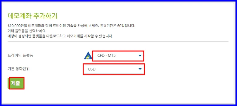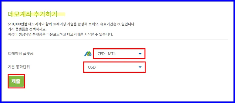 데모계좌는 잔고 소진 시 새로 생성해주시면 됩니다. (충전 불가)