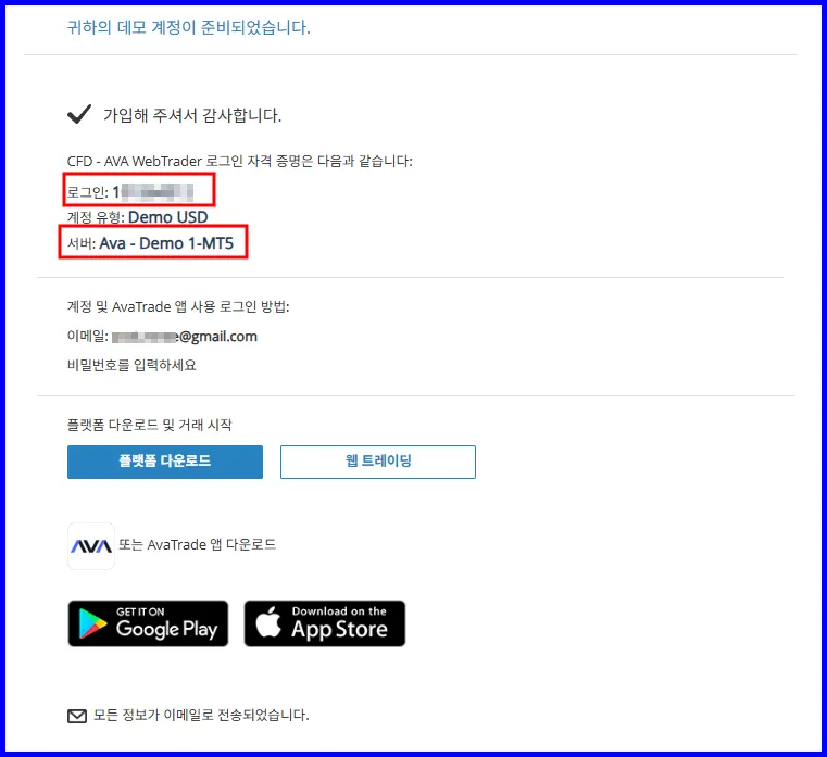 MT4/5 플랫폼에서 로그인 하시면 MT4/5 데모계좌개설 완료입니다.