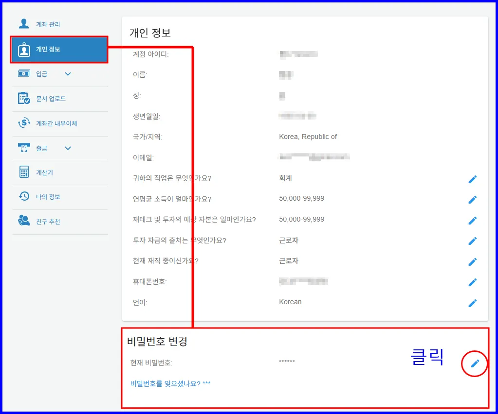 홈페이지 비밀번호 변경시 MT4/5 로그인 비밀번호도 동시에 변경됩니다.