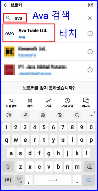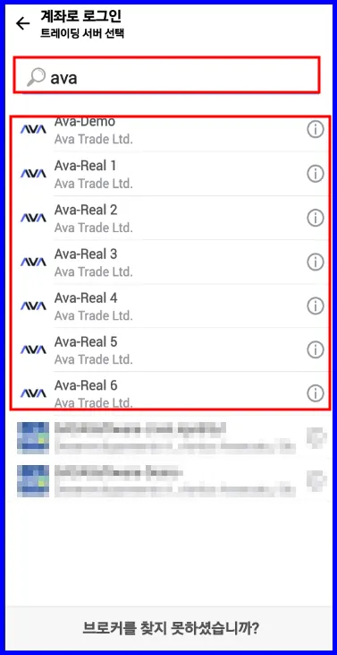 [계좌로 로그인] 메뉴에서 브로커찾기 검색창에 [Ava] 또는 [AvaTrade] 검색