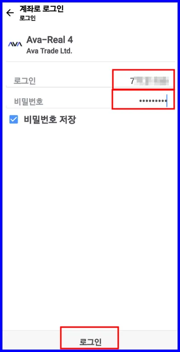 비밀번호는 아바트레이드 홈페이지 로그인 비밀번호와 동일합니다.