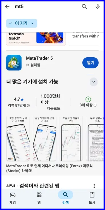 Play 스토어에서 MetaTrader 5 또는 MT5 검색