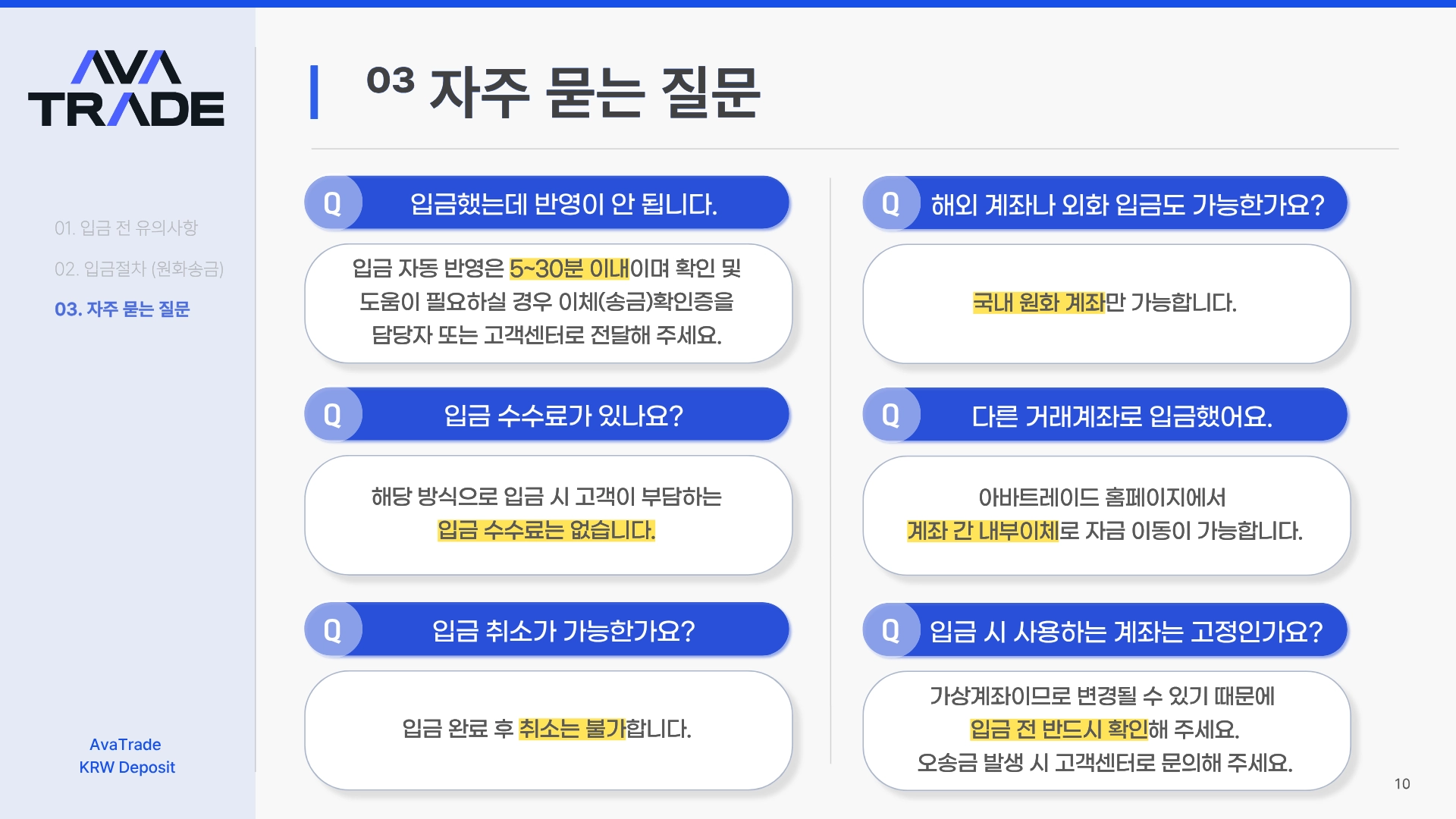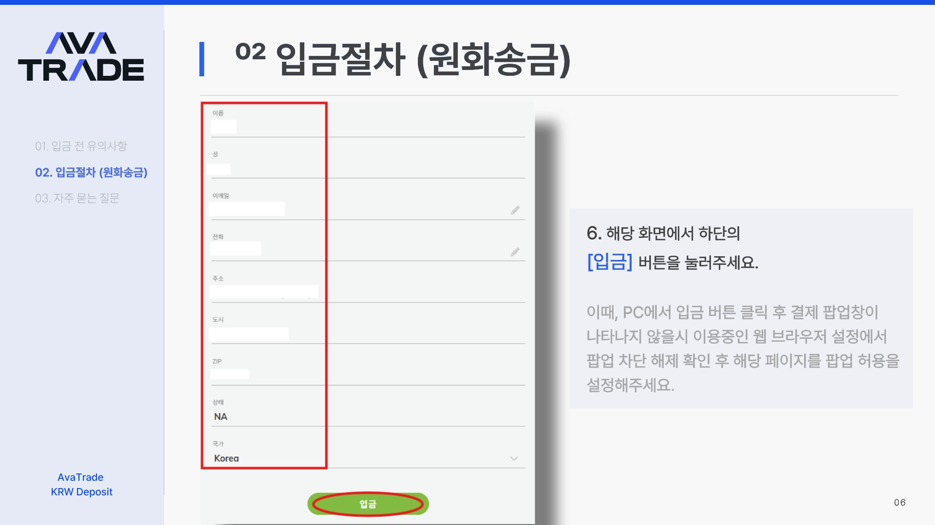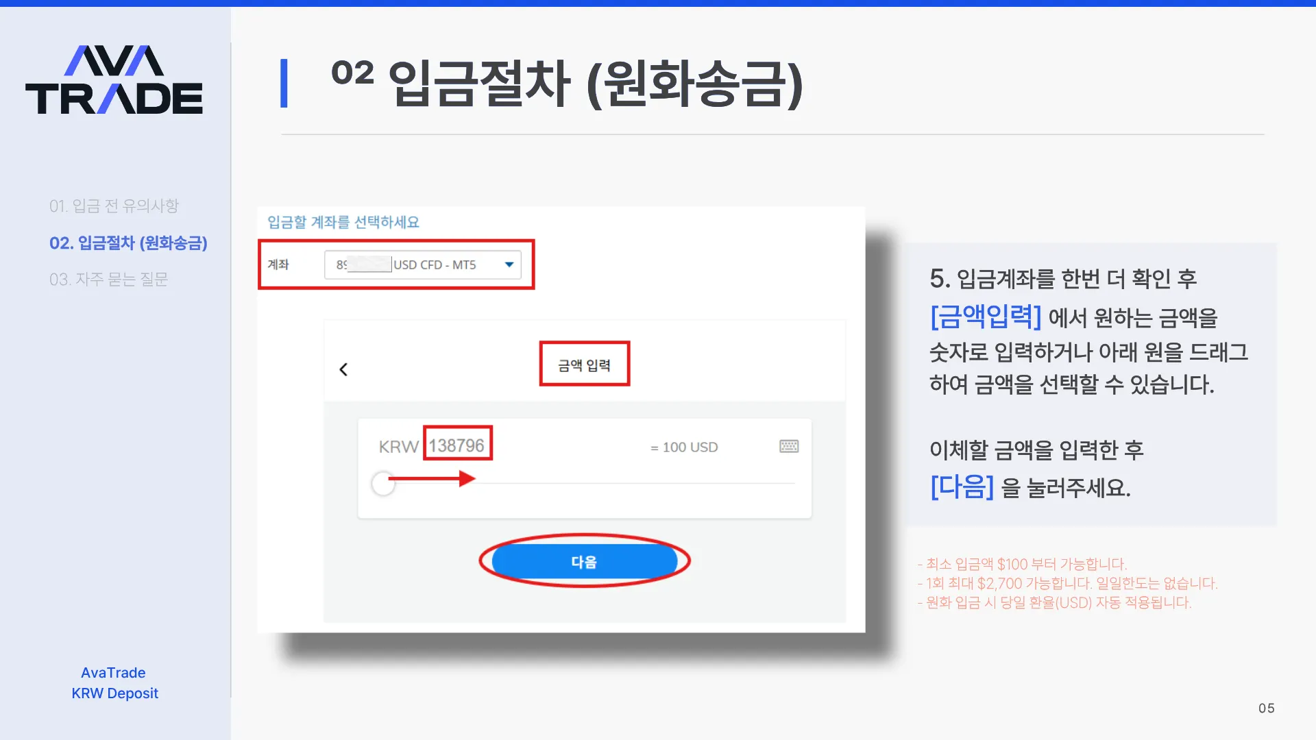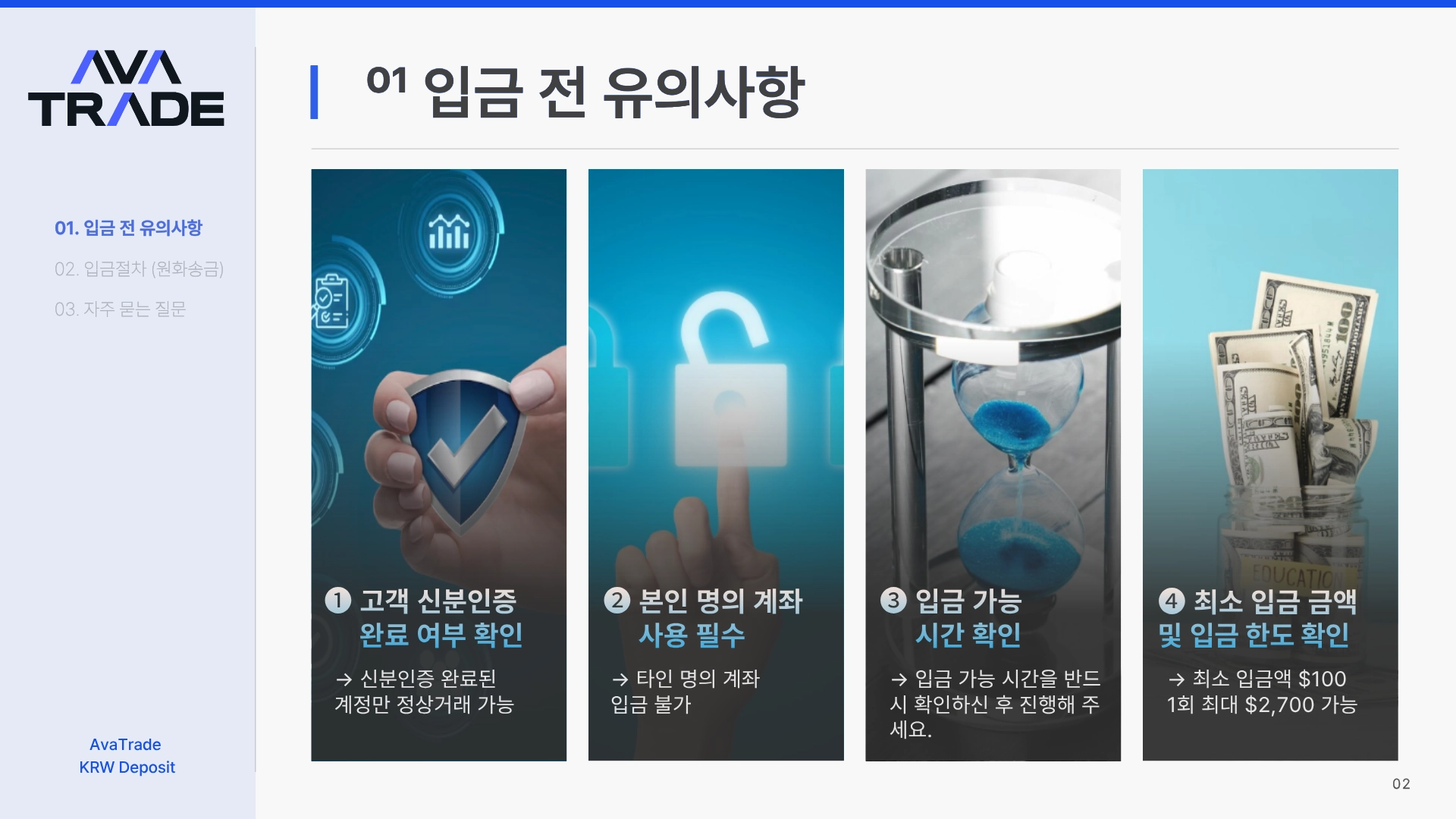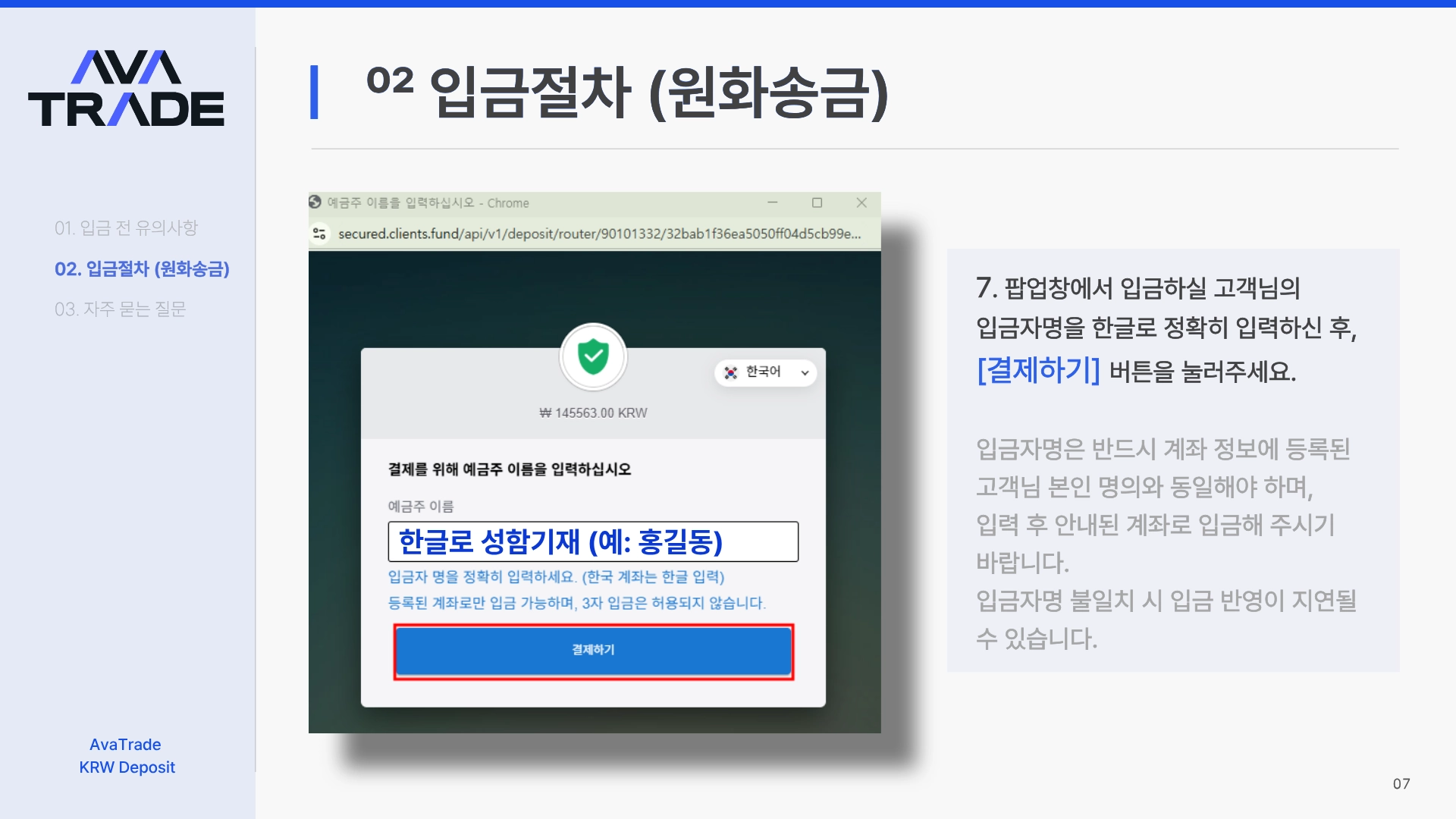 입금은 반드시 본인 명의 계좌에서만 가능합니다. 명의 불일치 시 입금이 반려됩니다.