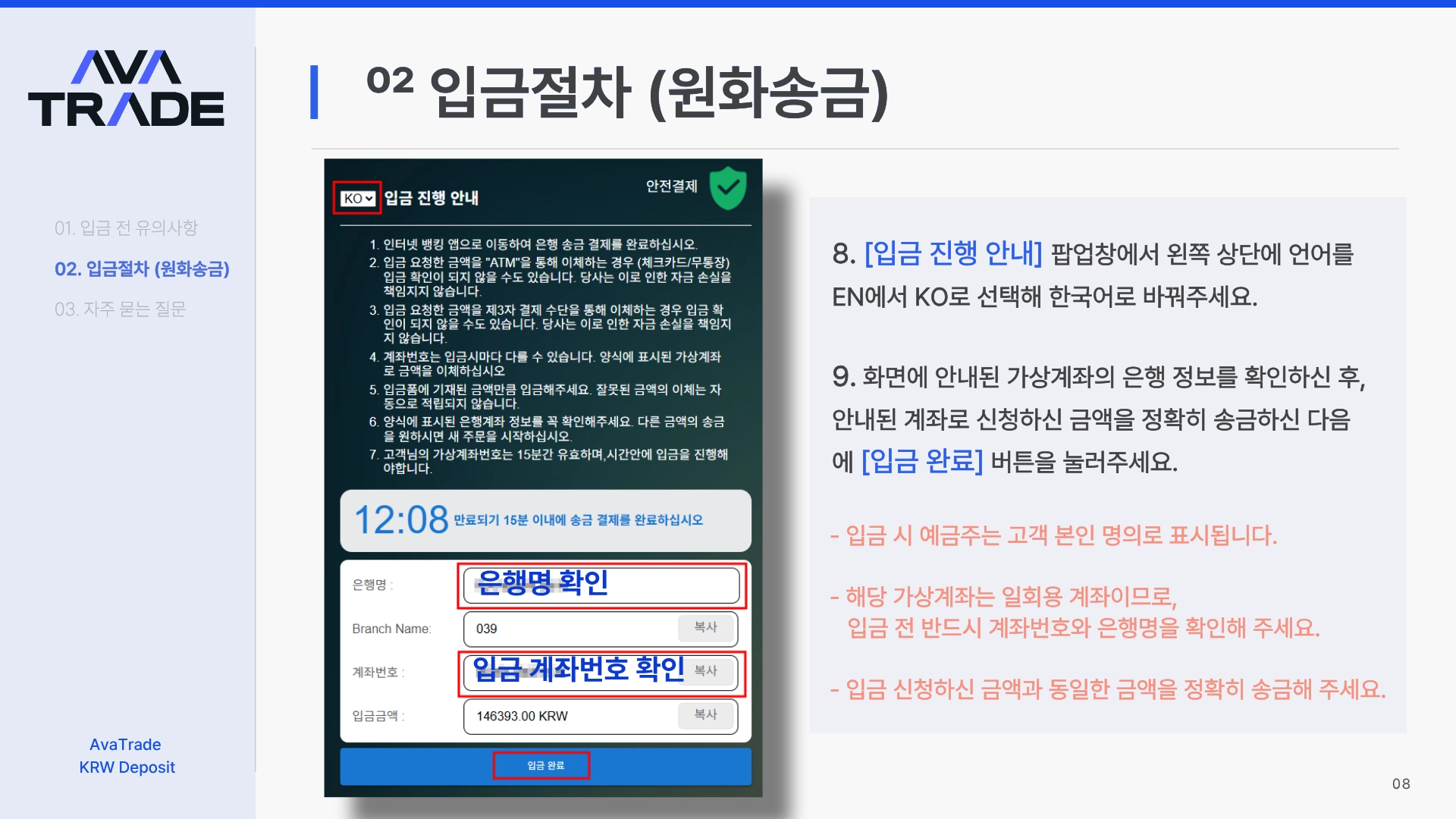 [사용불가]원화 입금 방법 (가상계좌 은행이체)