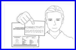 종이에 “KONNECTIVITY”와 일/월/년도 날짜를 기재한 후,