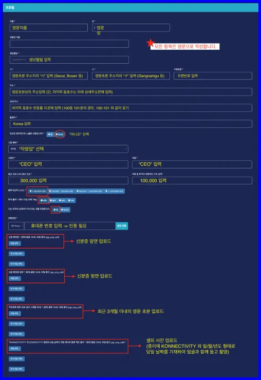 회원가입 과정에서 본인인증(KYC) 을 위해 아래 서류가 필요합니다.