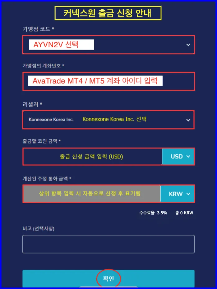 아래 안내에 따라 KONNECTIVITY를 통해 AvaTrade 계좌로 입금을 진행해 주세요.