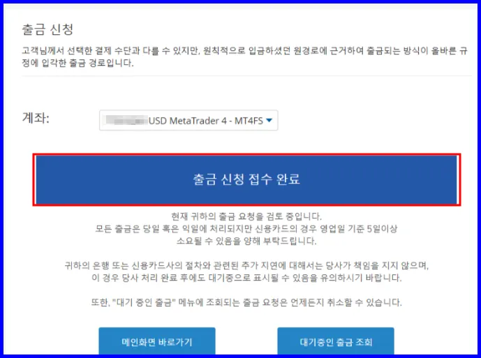커넥티비티를 이용한 출금 신청 시, 아바트레이드 홈페이지에서 출금 금액을 먼저 신청한 후 커넥티비티 홈페이지에서 한 번 더 출금 신청을 완료하셔야 정상적으로 출금 처리가 진행됩니다.